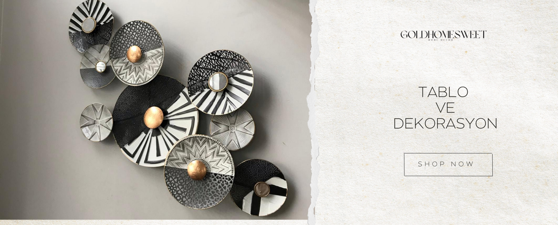 Yapay Çiçekli Gold Yassı Vazo 5 Parça Set No:19