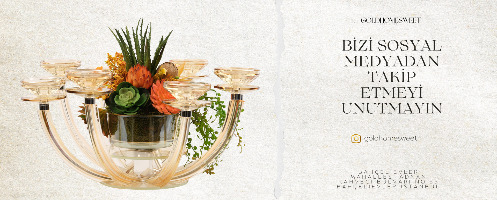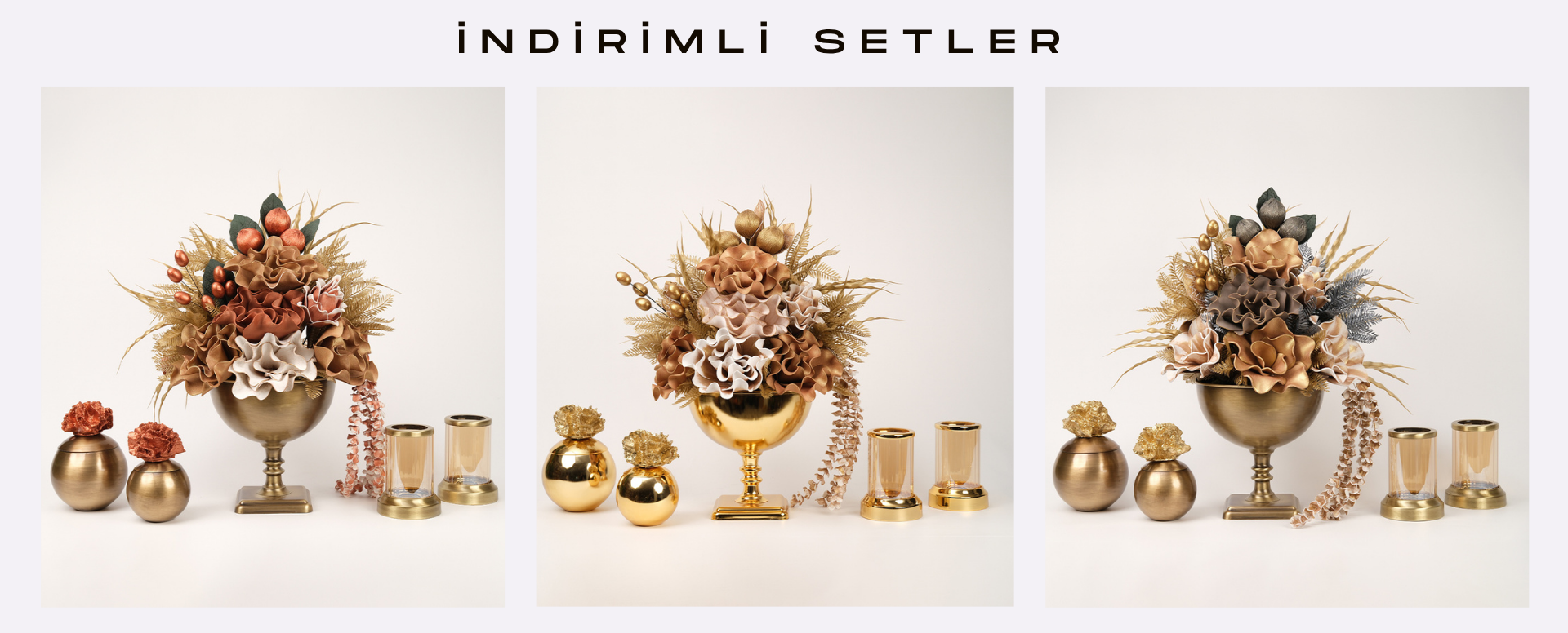 Yapay Çiçekli Gold 3 Parça Set No:8